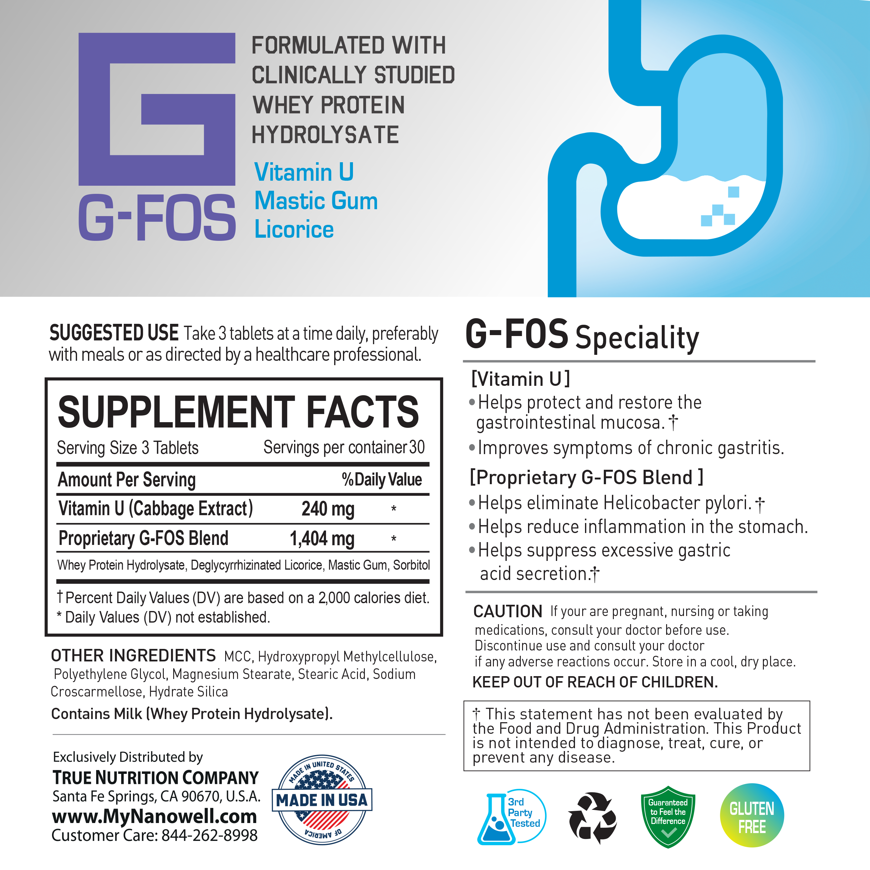 비타민 U: G-FOS에는 비타민 U가 포함하여 속쓰림과 위 기능 개선에 도움을 줍니다.