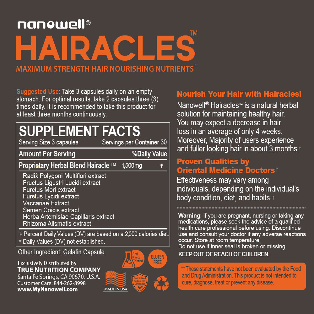 - 헤어라클스™는 하수오 (何首烏), 여정자 (女貞子), 상심자, 구기자 (枸杞子), 왕불류행, 율무 (薏苡仁), 인진쑥, 택사 등의 천연한방 약초추출물로 만들어졌습니다.