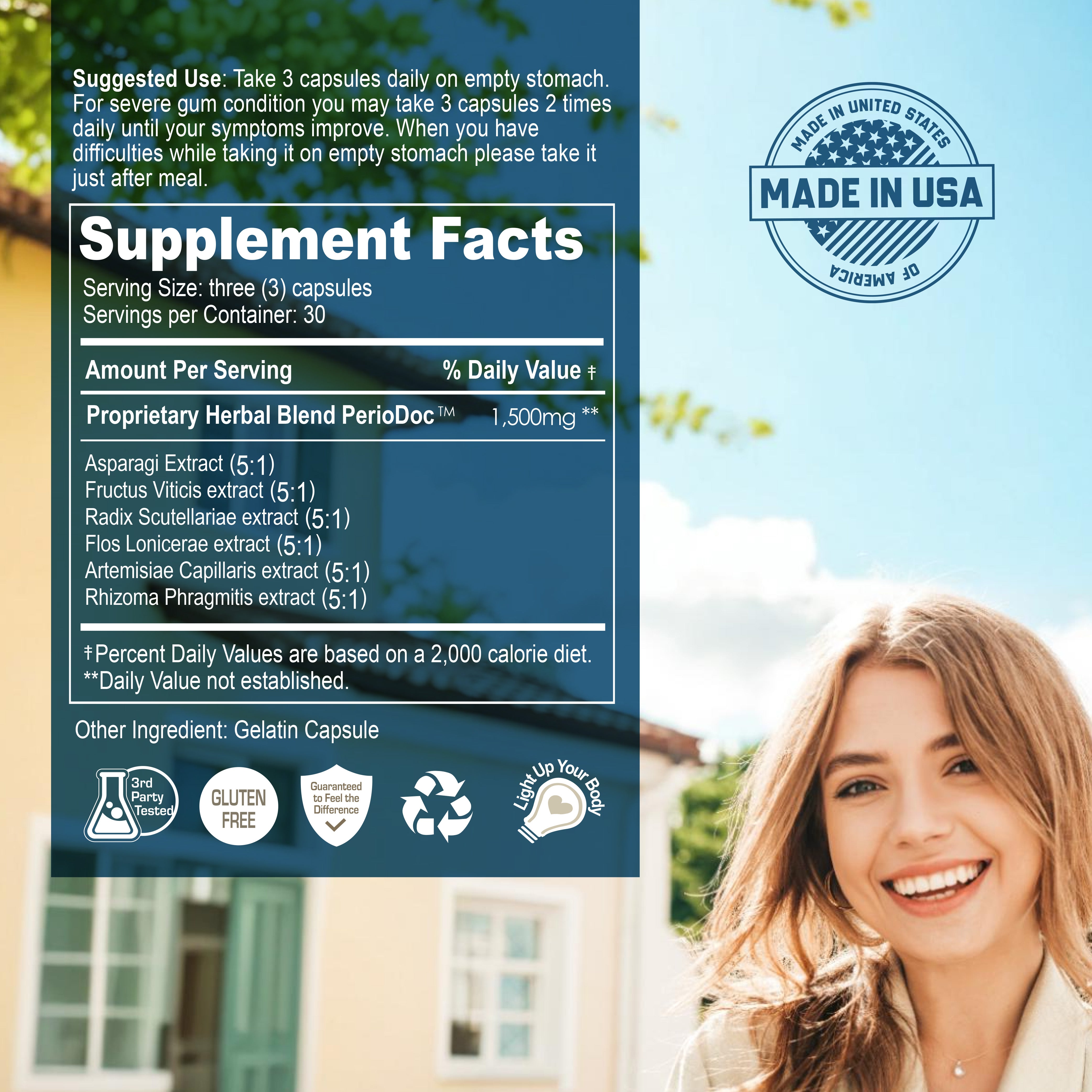 - 일반적인 잇몸질환의 경우 하루에 3캡슐을 식전에 복용합니다.