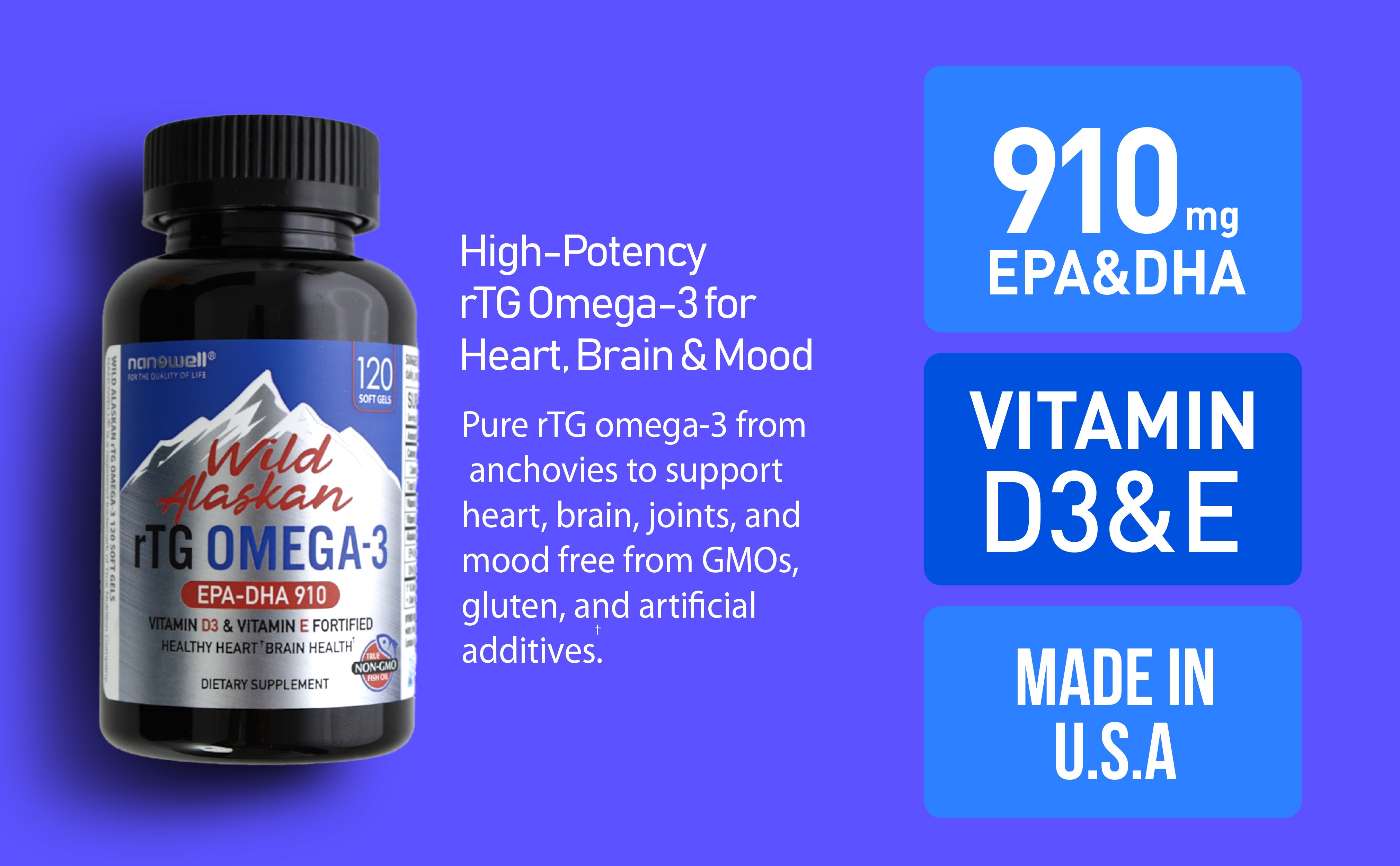 910mg의 알래스카 야생 오메가-3를 제공합니다.