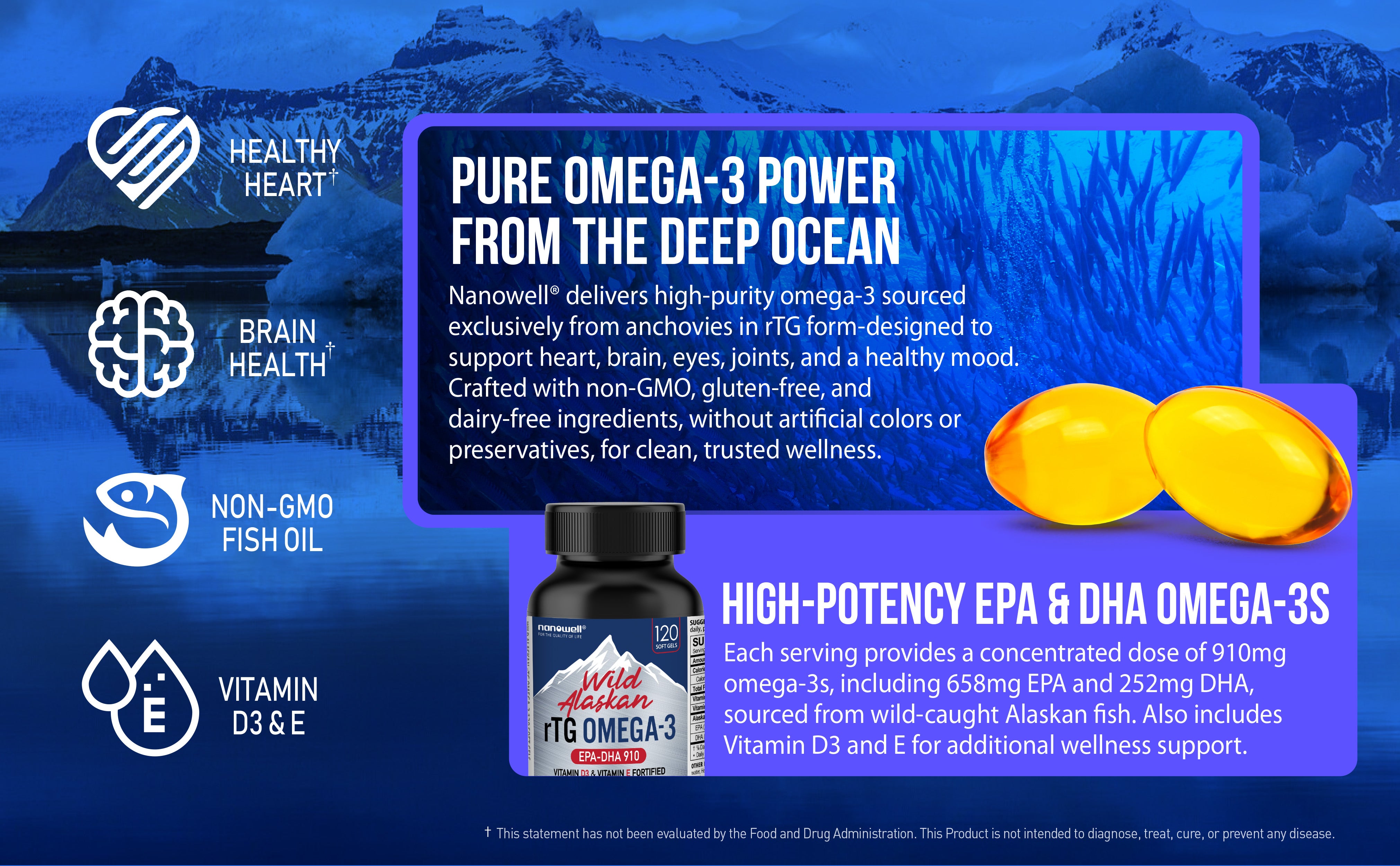 rTG 오메가-3는 높은 순도와 효과로 인정받는 프리미엄 피쉬 오일 보충제입니다.