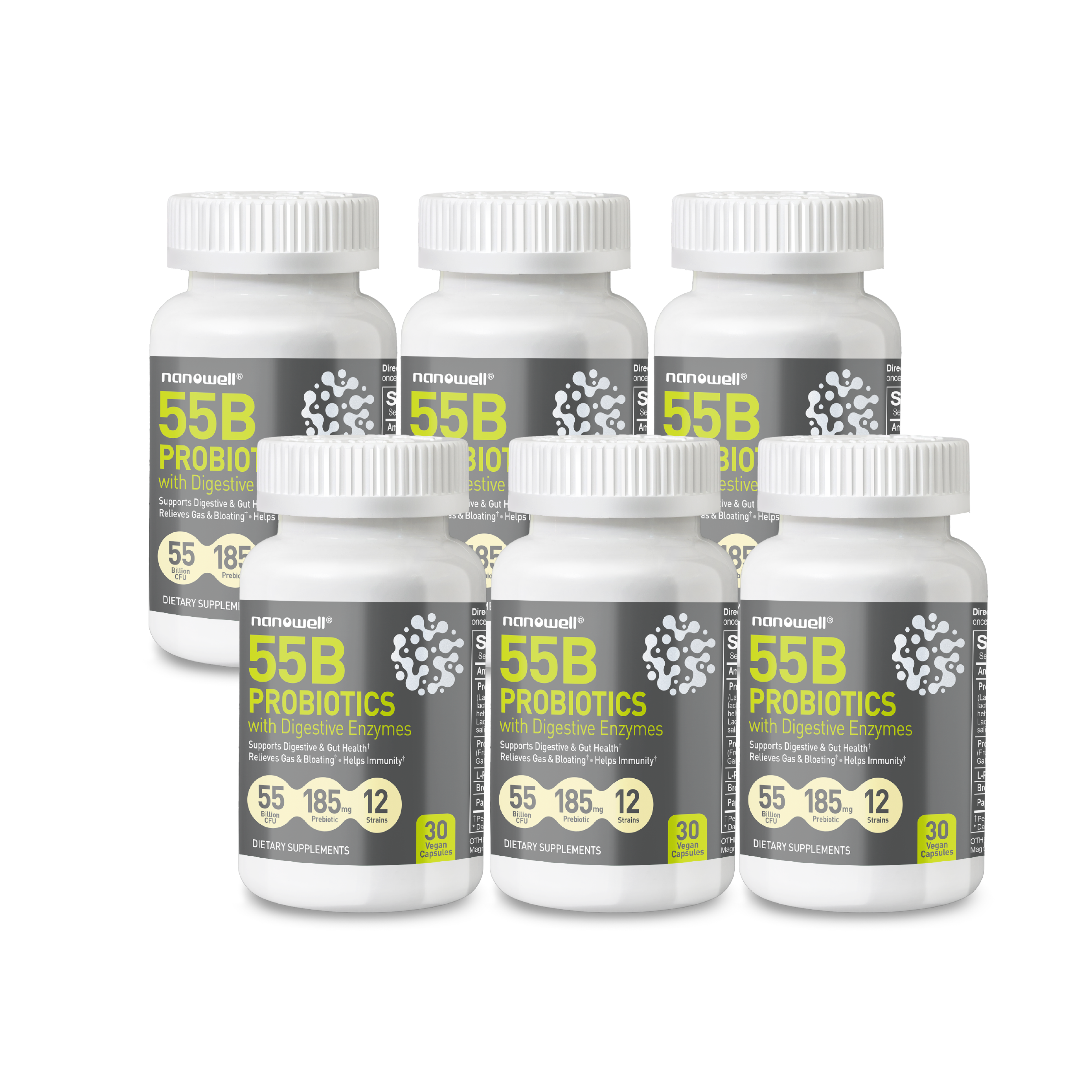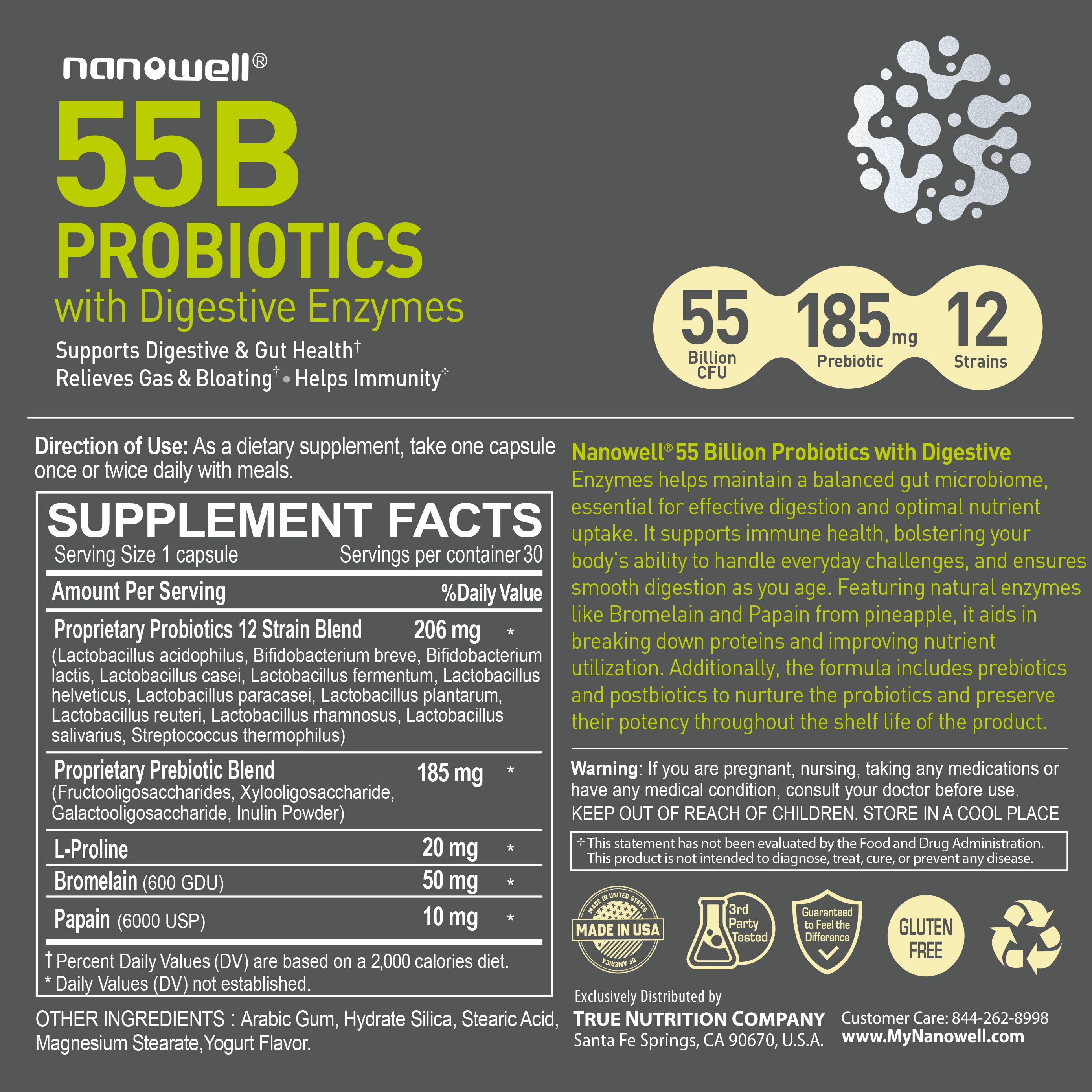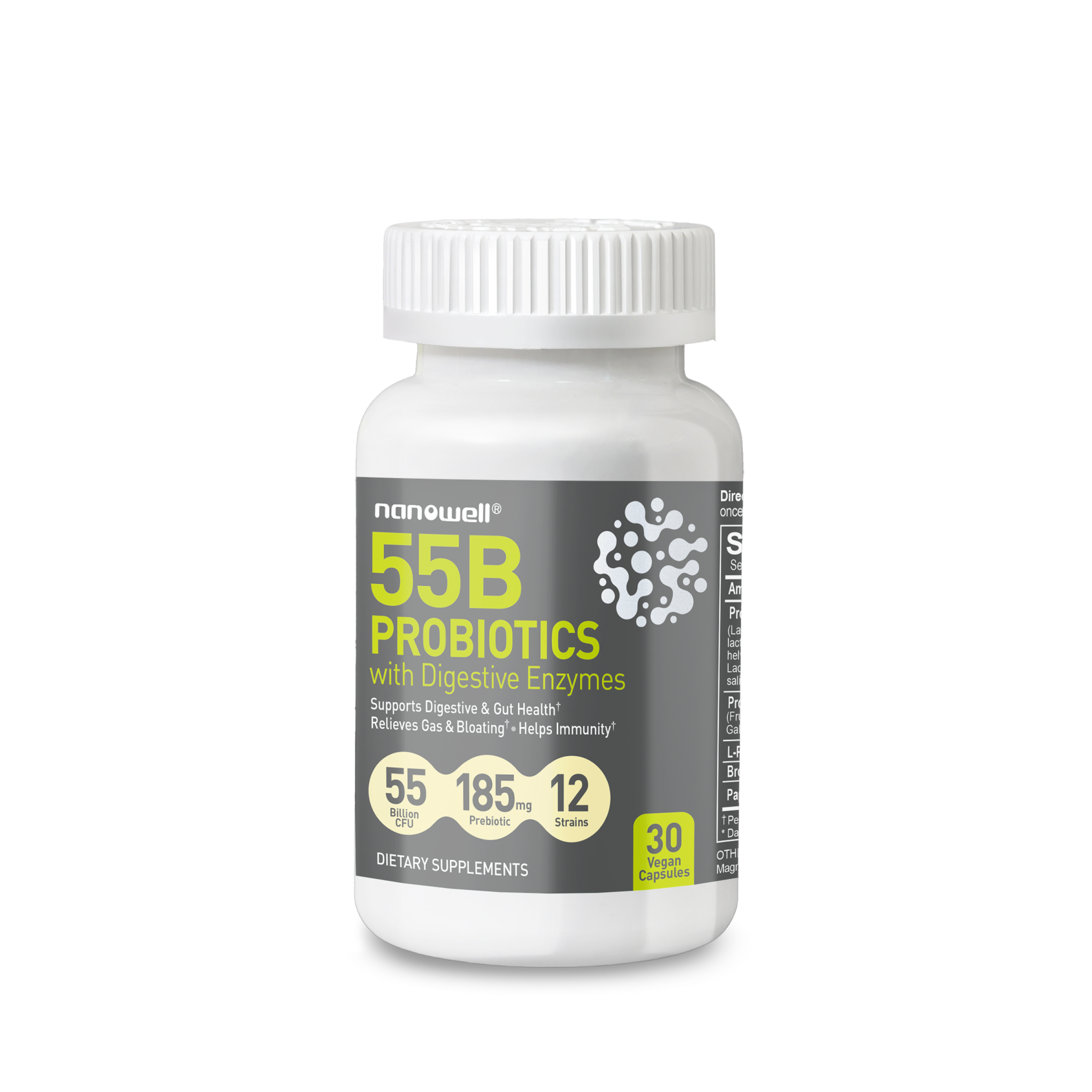 Nanowell® 55B 프로바이오틱스 with 소화효소로 프로바이오틱스, 프리바이오틱스, 소화 효소의 궁극적인 조합을 경험하세요. 면역 체계 강화, 소화 건강 증진, 장내 균형을 지원하도록 설계된 이 프리미엄 보충제는 남녀 모두에게 적합합니다.
