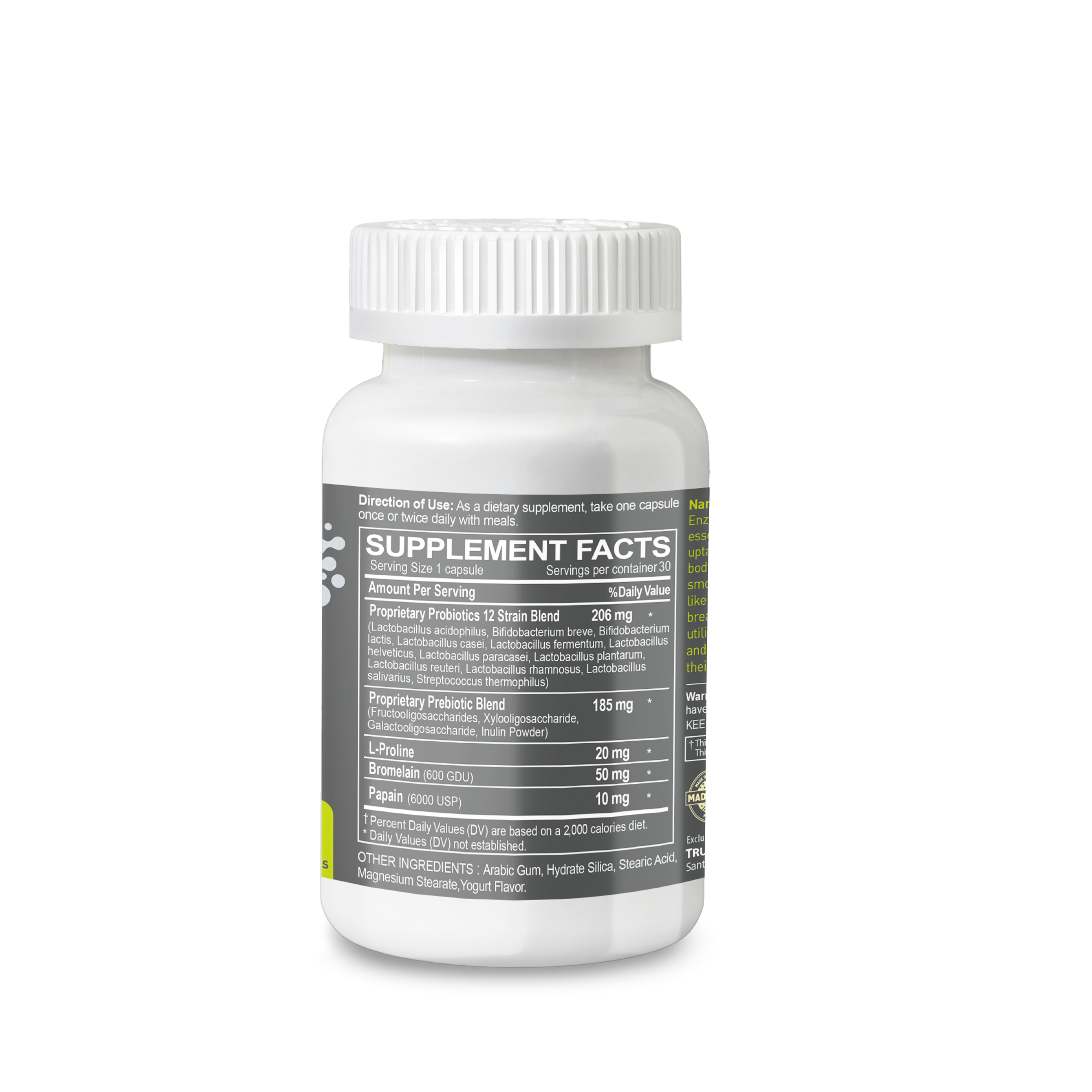 - L-프롤린 & 브로멜라인 강화: 20mg의 L-프롤린과 300 GDU의 브로멜라인을 함유하여 소화 효율성을 높이고 전반적인 건강을 지원합니다.