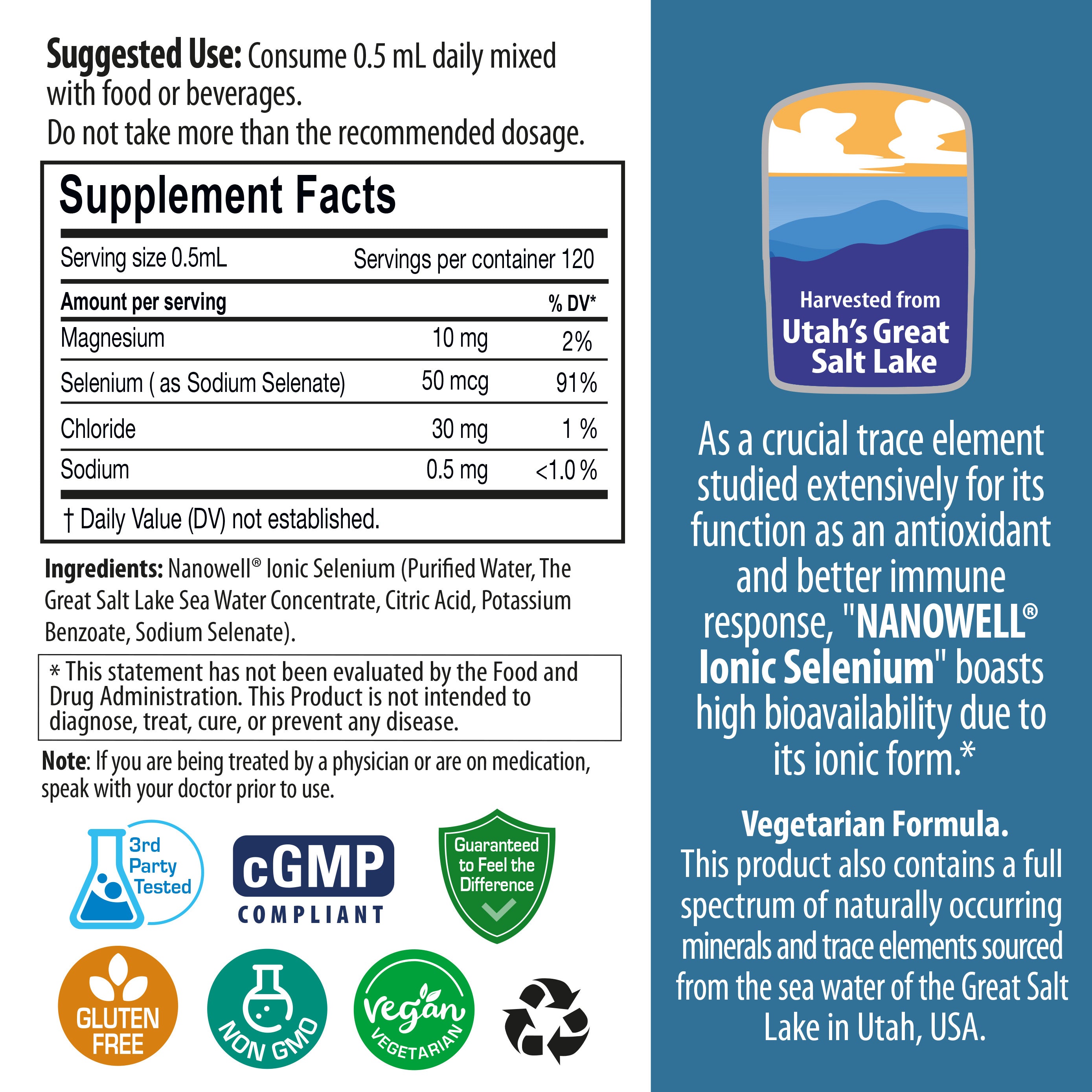 이 채식주의자용 제품은 미국 유타주 그레이트 솔트 레이크 해수에서 추출한 천연 미량 미네랄을 풍부하게 함유하고 있습니다.