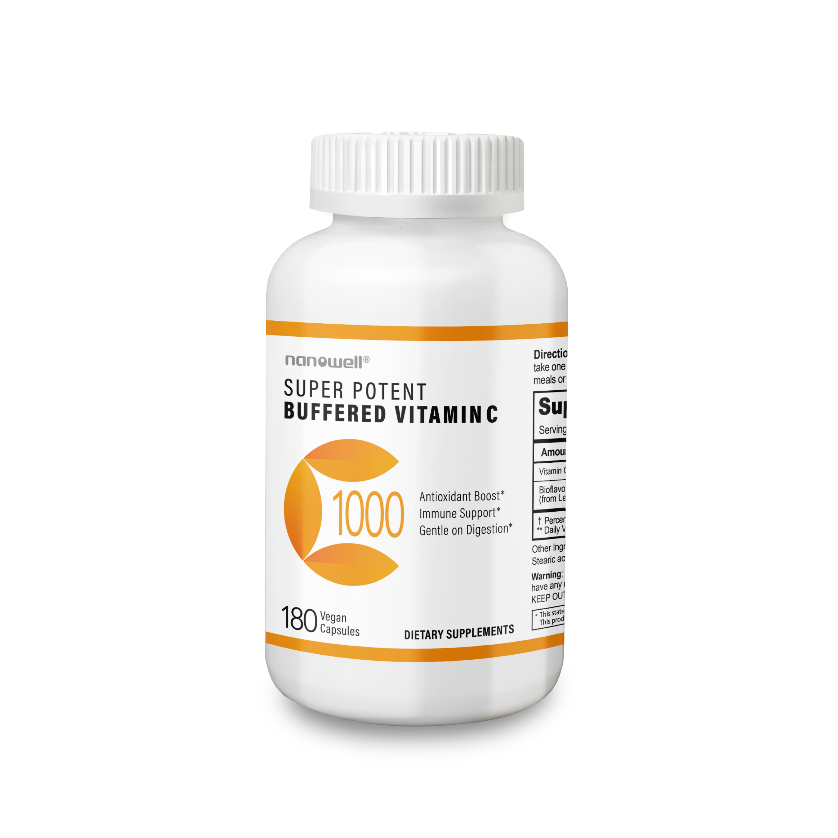 formation, essential for maintaining healthy skin, joints, and blood vessels. - Non-GMO and Gluten-Free: Nanowell® Buffered Vitamin C 1000mg with