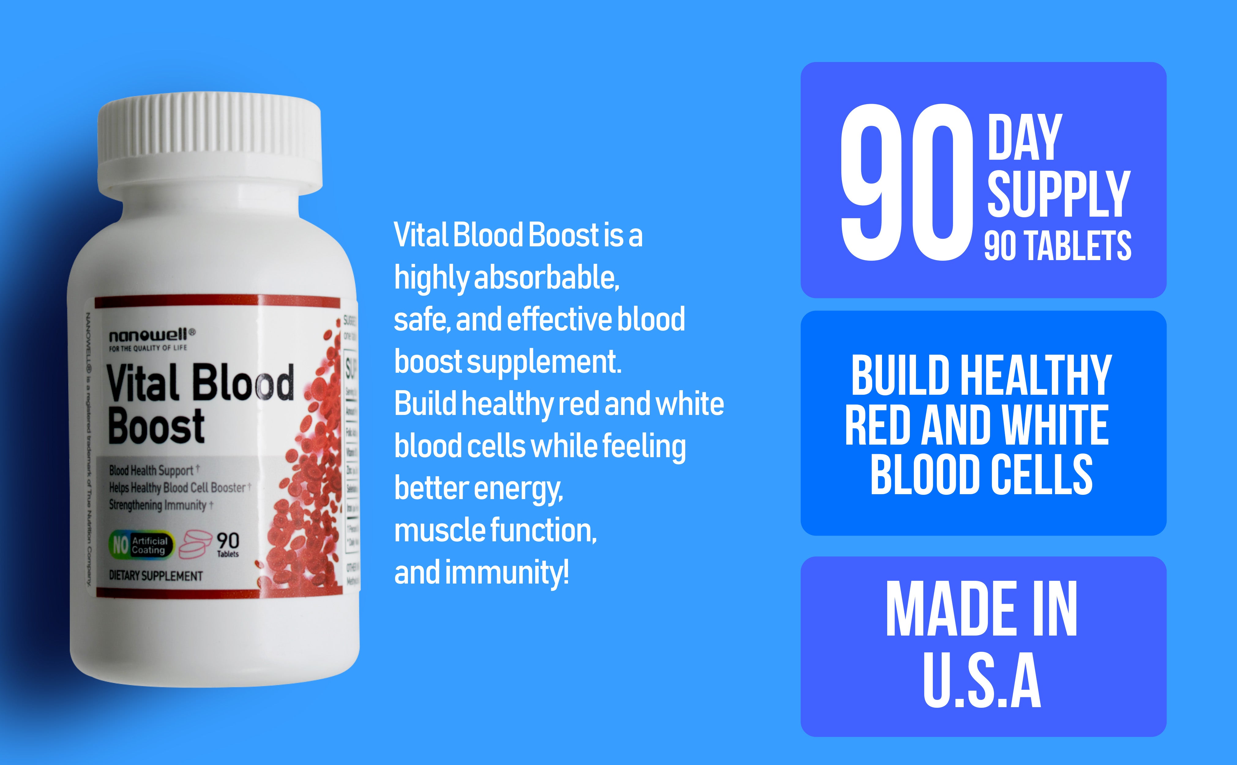 Vital Blood Boost is a highly absorbable, safe, and effective blood boost supplement. Feel better energy, muscle function, and immunity!