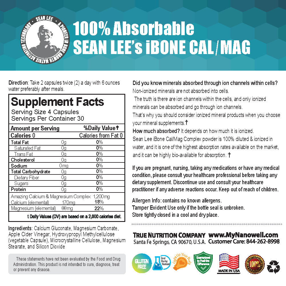 4x Sean Lee's iBone Cal Mag 120 Vegetable Capsules