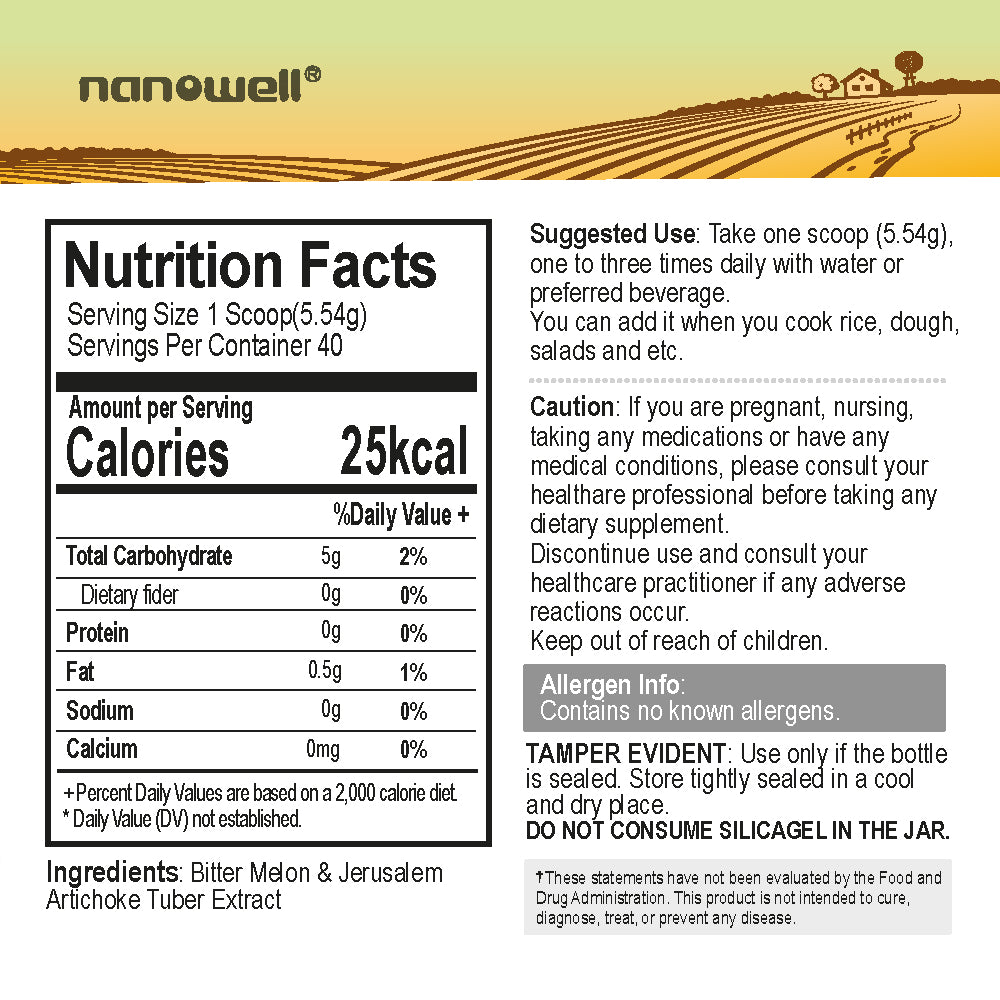 Ingredients: Nanowell Bitter Melon Concentrated powder and INULIN powder from Jerusalem Artichoke
