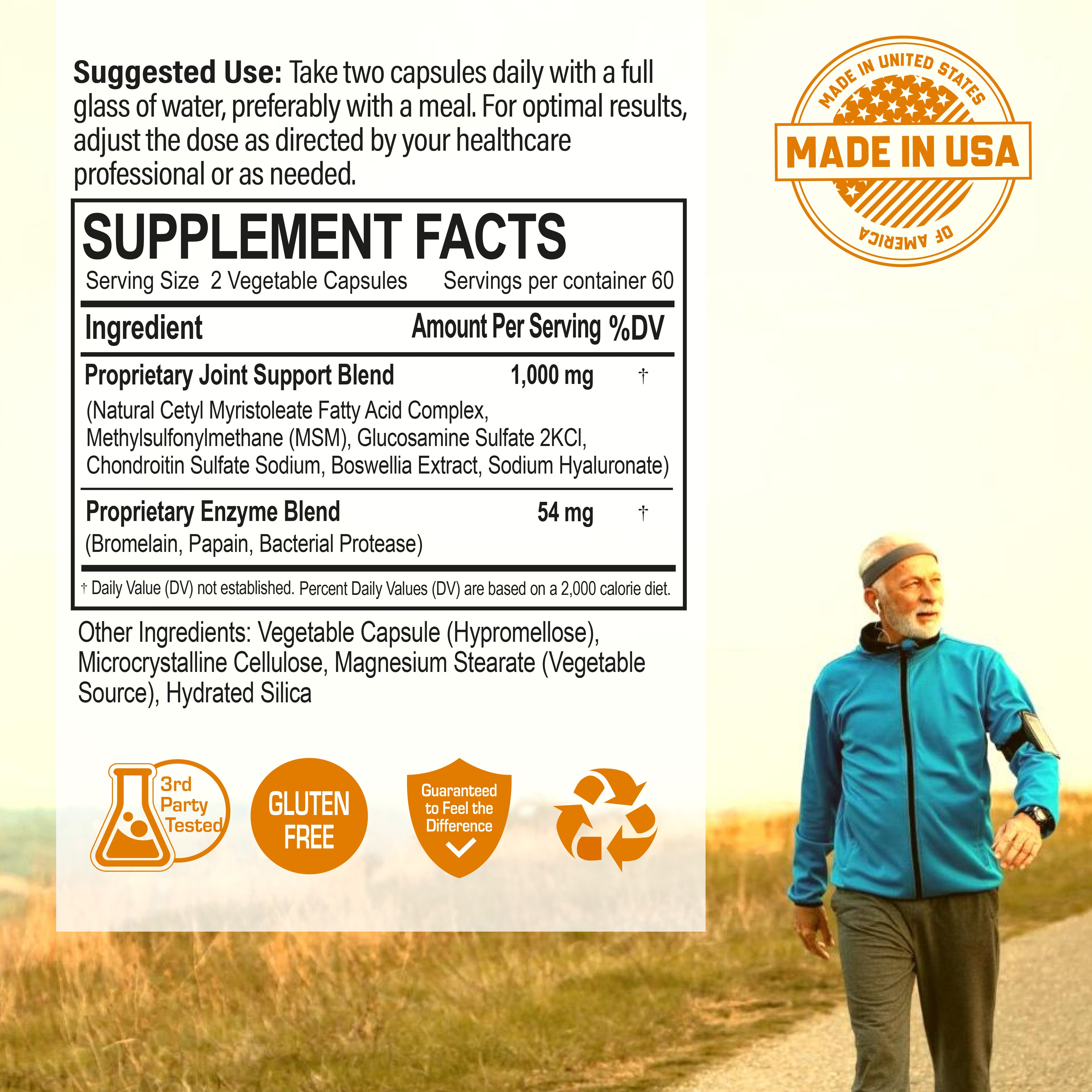 💪Comprehensive Joint Support – Features CetylMyristoleate Omega-5 fatty acids, plus MSM, Glucosamine, Chondroitin, Boswellia, and Hyaluronic Acid to provide nutrients that support healthy joint structure and the function of synovial fluid.*