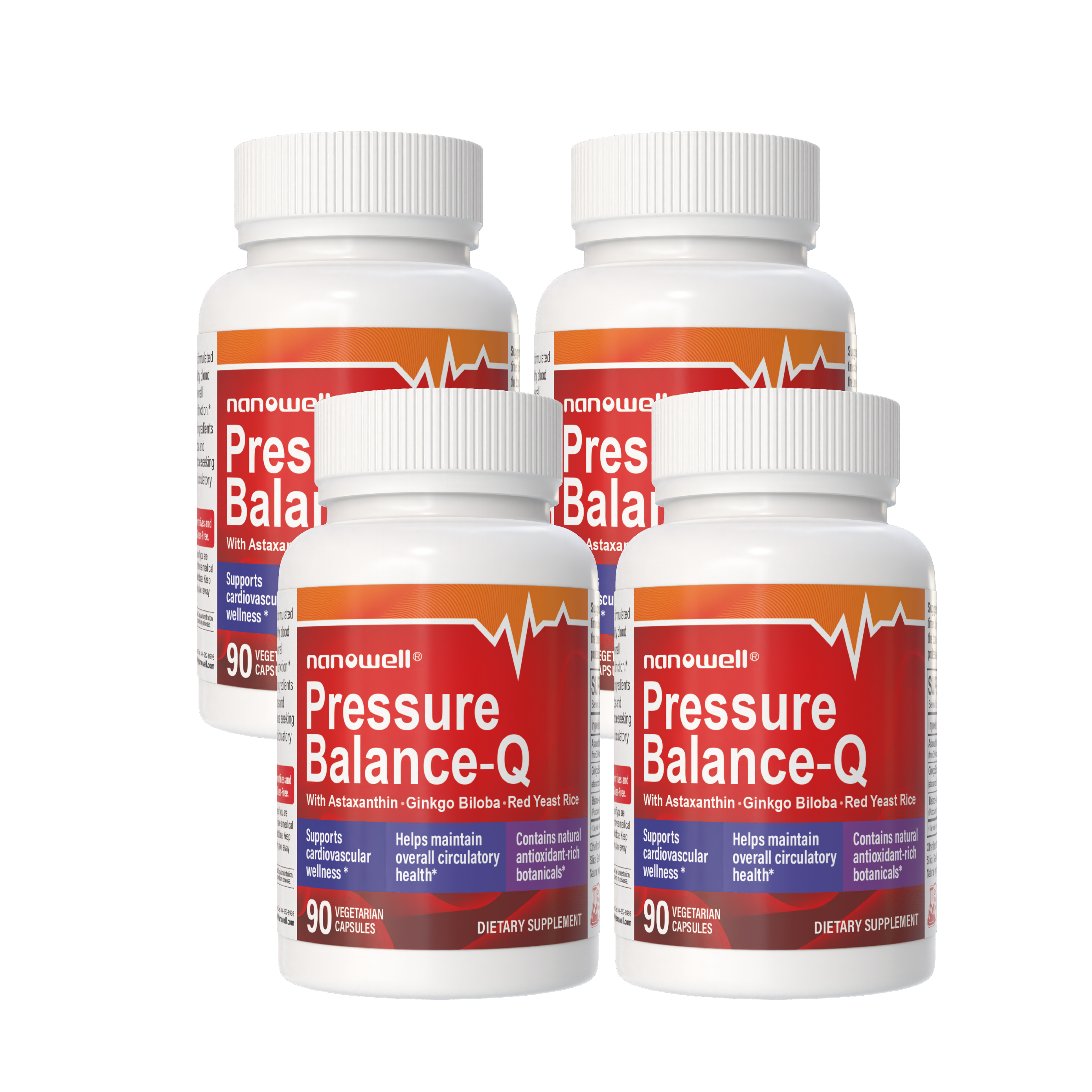 Nanowell® Pressure Balance-Q | Supports Cardiovascular Wellness & Healthy Blood Pressure Levels | With Natural Astaxanthin, Ginkgo Biloba, Red Yeast Rice & Policosanol | Antioxidant-Rich Heart Health Supplement | 90 Vegetarian Capsules