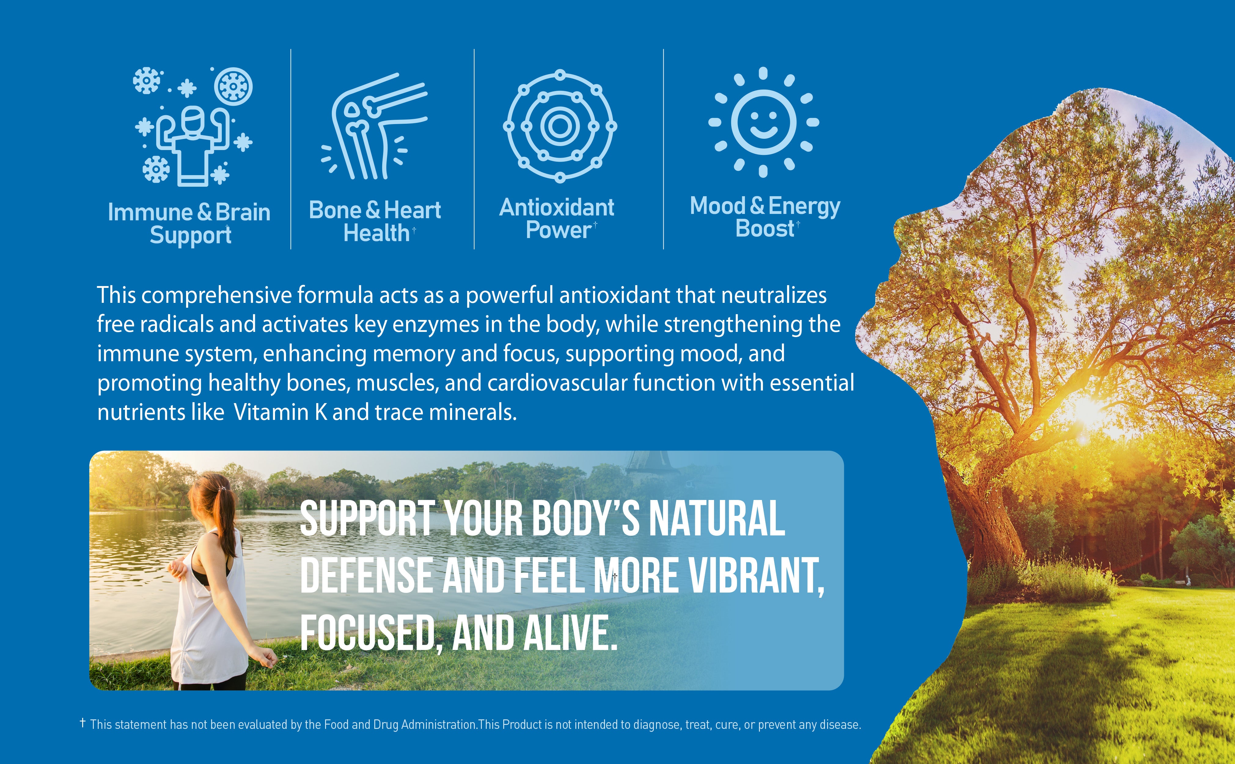 - Strengthens and boosts immune system while improving memory and focus
